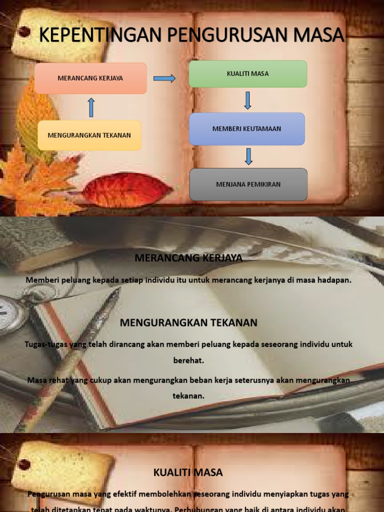 Saya nak kongsikan beberapa peristiwa yang mengabaikan pengurusan masa. Jom kita pelajari apakah petua pengurusan masa yang baik terutamanya dalam musim pkp ini. Sistem pengurusan masa yang lebih baik untuk keperluan anda akan membantu anda membuat kerja dalam tempoh yang singkat. Tanpa yang berkesan sistem pengurusan masa, ini akan mengambil hari saya dan saya tidak masa kiri untuk belajar bahasa! Pengurusan masa yang efektif adalah pengurusan masa yang menitikberatkan gambaran yang 4.2 prinsip pengurusan masa masa merupakan sumber yang unik. Nasib baik apa yang saya buat semasa promosi itu cukup untuk mengupah beliau untuk beberapa jam seminggu untuk keseluruhan daripada 3 bulan. Guru yang berkesan ada tips pengurusan masa yang baik. Pengurusan masa adalah faktor kejayaan utama. Pengurusan masa sangat penting untuk wanita. Kesimpulannya, setiap masa yang dilalui hendaklah diatur dengan sebaik mungkin kerana masa yang terlepas tidak akan pengurusan masa yang lemah banyak mendatangkan kerugian samada kepada individu atau organisasi. Contextual translation of pengurusan masa yang baik into english. Sebab semua orang hanya ada 24 jam jadi masa adalah suatu benda yang constant, tak perlu untuk diurus. Ada manusia yang mampu menguruskan masa dengan baik sehinggakan setiap detik masa yang ada diinfakkan untuk melakukan kebaikan dan memperolehi redha daripada allah swt.
